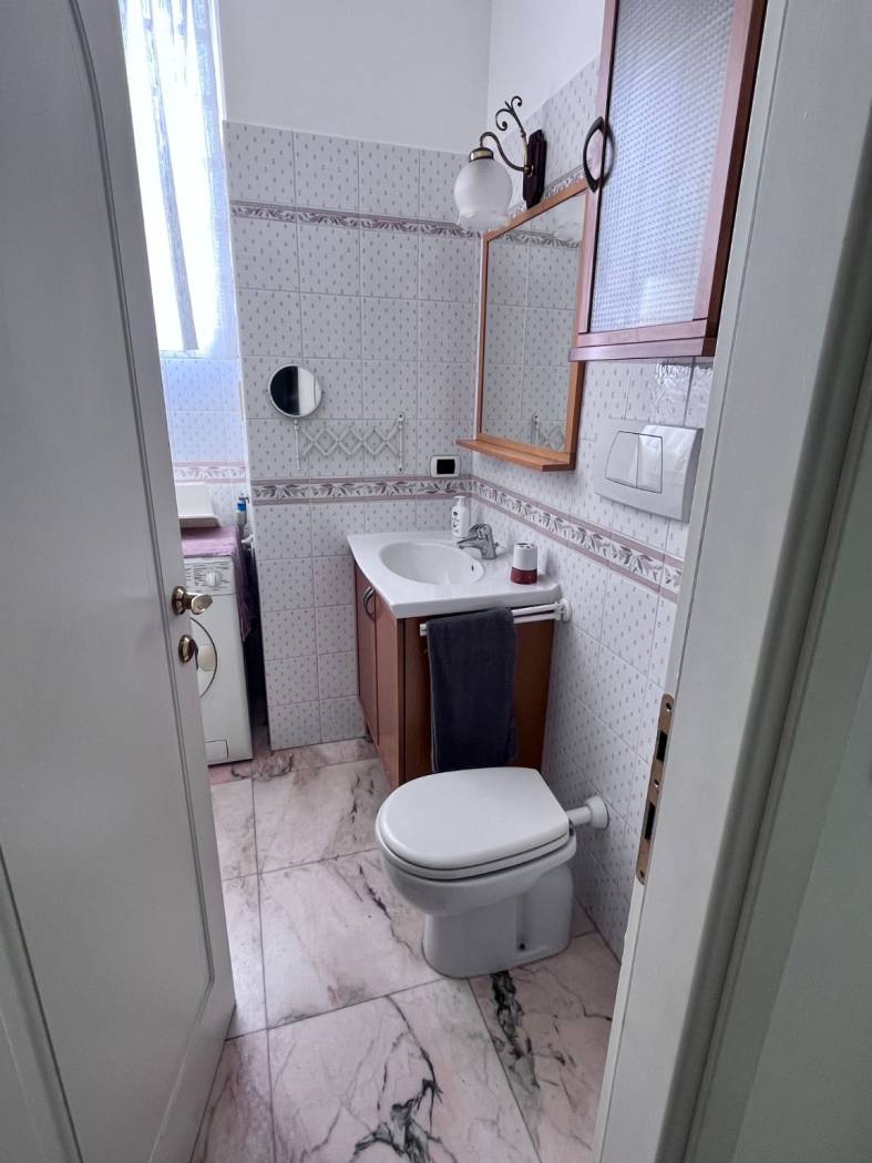 L'ingresso conduce a un spazioso soggiorno, perfetto per momenti di relax o per accogliere amici. La cucina abitabile è dotata di elettrodomestici e di un grande frigo, ideale per chi ama cucinare. La camera matrimoniale fronte mare offre un'atmosfera romantica, mentre la seconda camera con due letti è perfetta per ospitare familiari o amici. Bagno padronale e bagno di servizio garantiscono comodità e privacy.